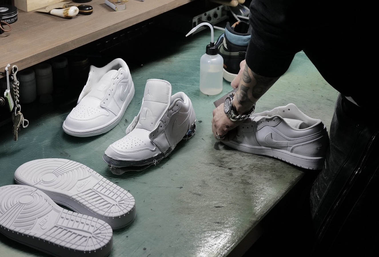 折角、気に入ったデザインやプレミアム価格のスニーカーを買ってもソール交換が出来ないため、履くのが勿体なく飾るか、履き潰して捨てるかのどちらかでしたが、私自身がスニーカーを作れるようになったことで、自社が作成したカスタムスニーカーに関しては、リペアを継続的にすることで長くご愛用していただけます。