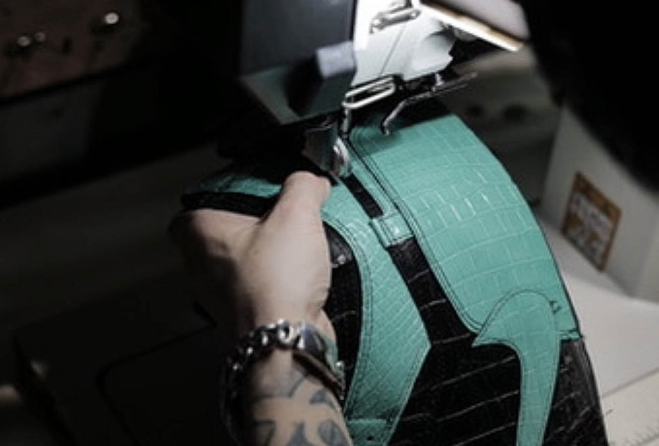 彼は自身を【シューサージョン(靴の外科医)】と名乗り、ナイキのスニーカーをエキゾチックレザーでカスタマイズしています。